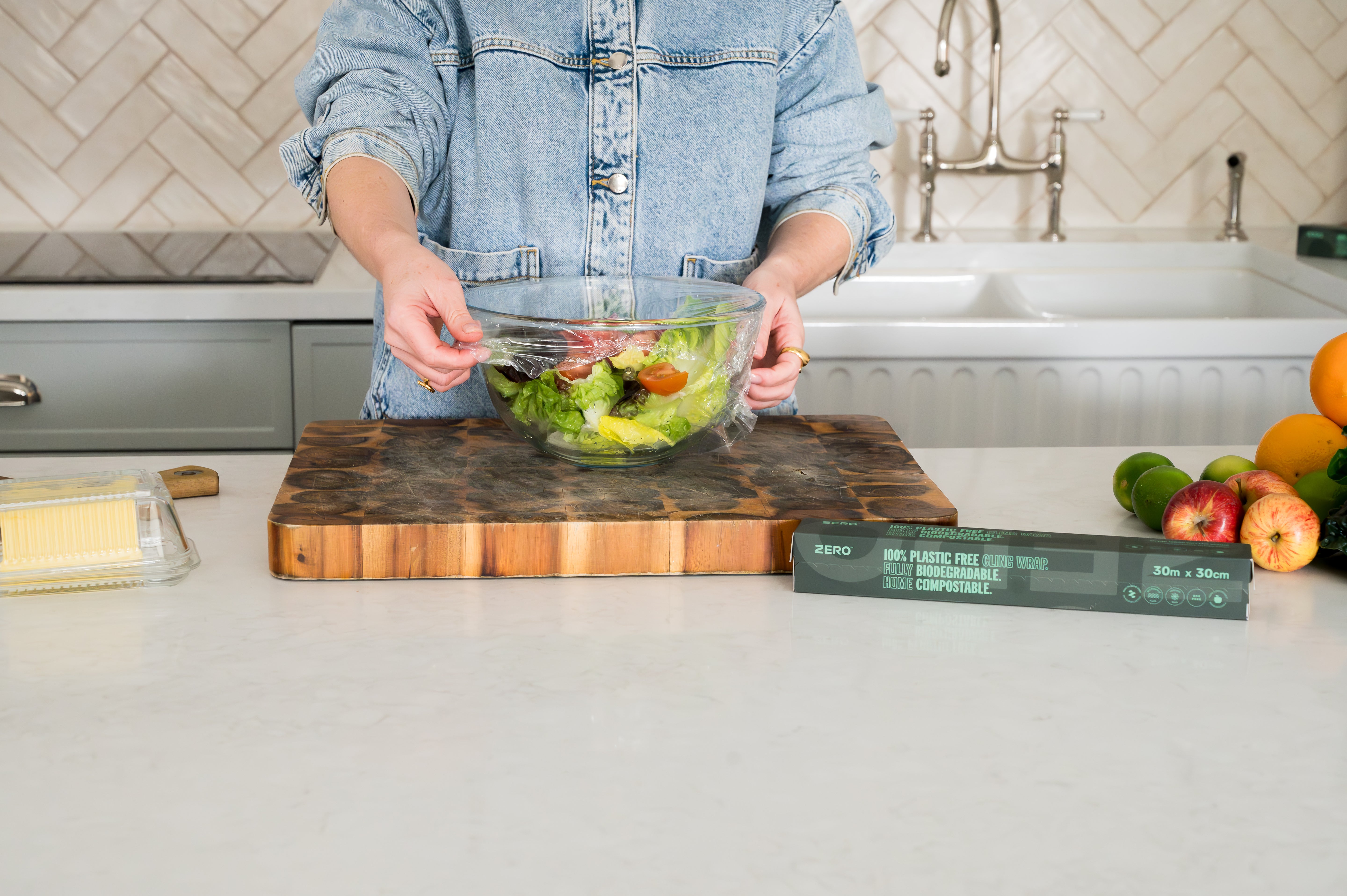 100% plastic free cling wrap that actually sticks!...Say goodbye to harmful chemicals and microplastics filtering onto your food and say hello to safe food storage!